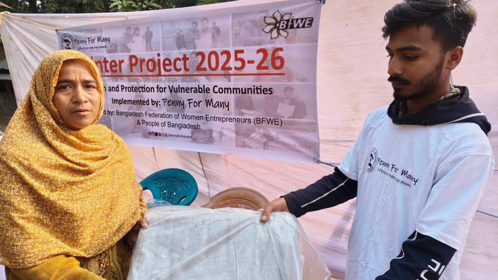 “আমাদের নিয়মিত শুভানুধ্যায়ীদের সহযোগিতায় প্রতি বছরই আমরা শীতকালে কম্বল ও উষ্ণ পোশাক বিতরণ করে থাকি। এ বছর বাংলাদেশ ফেডারেশন অব উইমেন এন্ট্রেপ্রেনিউরস (BFWE) আমাদের সঙ্গে যুক্ত হয়ে গ্রামীণ এলাকার ঝুঁকিপূর্ণ নারী, শিশু ও প্রবীণদের সহায়তায় গুরুত্বপূর্ণ ভূমিকা রাখছে। সমাজের বিত্তবান ও সক্ষম মানুষদের প্রতি আমার আহ্বান—আপনার সামর্থ্য অনুযায়ী অসহায় মানুষের পাশে দাঁড়ান।”