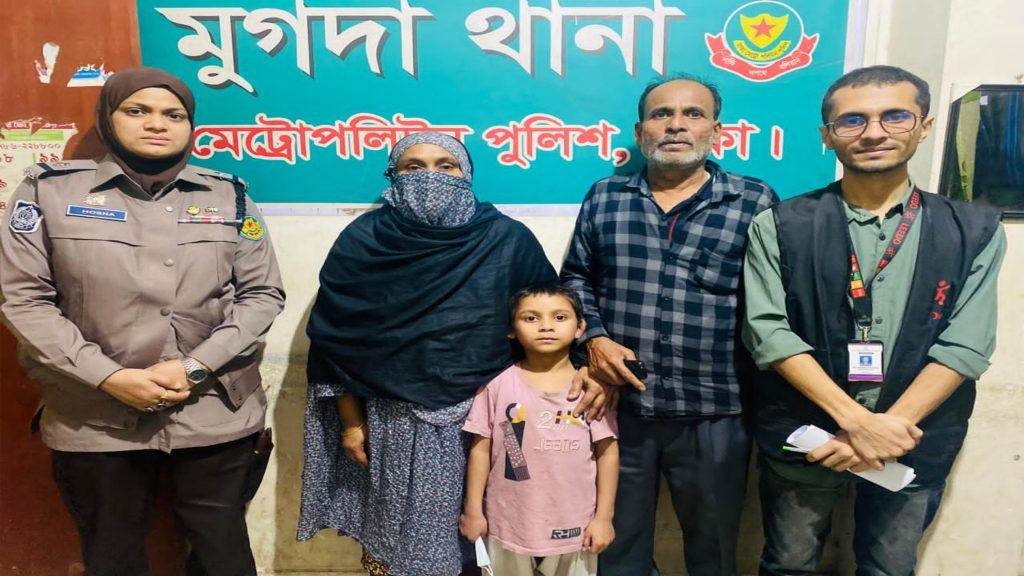 তারা আরও জানান, গত ২১ জানুয়ারি মুগদা থানার ১২৭৫ নং জিডির মাধ্যমে শিশু মুছাকে উদ্ধার করে সেতুবন্ধন শেল্টার কমলাপুরে নিরাপদ আশ্রয় দেওয়া হয়। উদ্ধারের সময় থানায় শিশুটির সঙ্গে কাউন্সেলিং করে জানা যায়, সে মাদ্রাসায় আর পড়তে না চাওয়ায় অন্য এক শিশুর সহযোগিতায় সেখান থেকে পালিয়ে আসে। আজ সামাজিক যোগাযোগ মাধ্যম ব্যবহার করে শিশুটির পরিবারের খুজে বের করা হয় ।